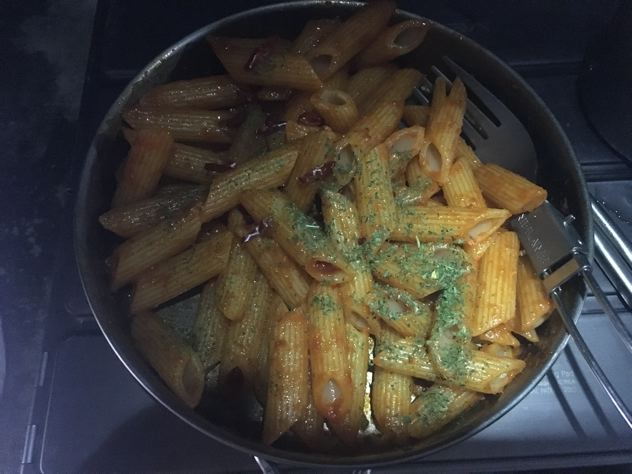 〆にペンネアラビアータを食べて、この日は、ばたんQ