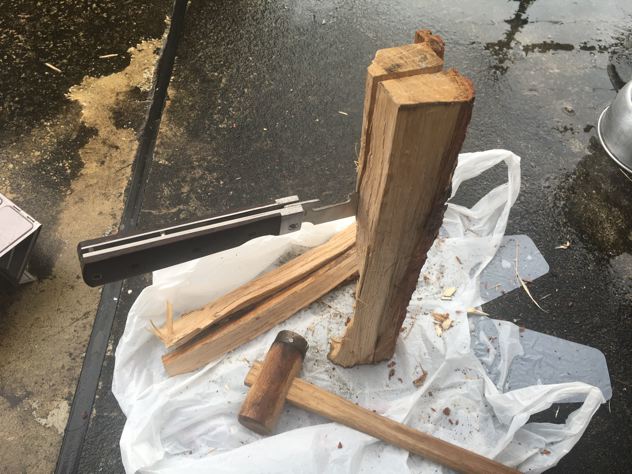 お次は硬い広葉樹。ガツんとぶったたいたら、あれ?なんかとれたぞ?
