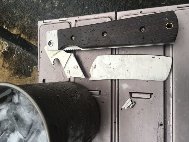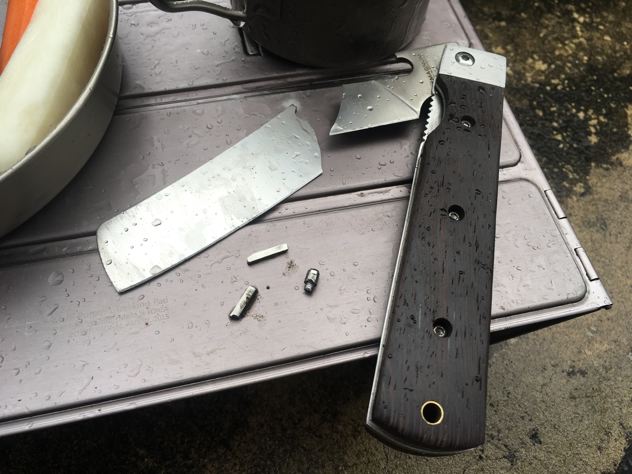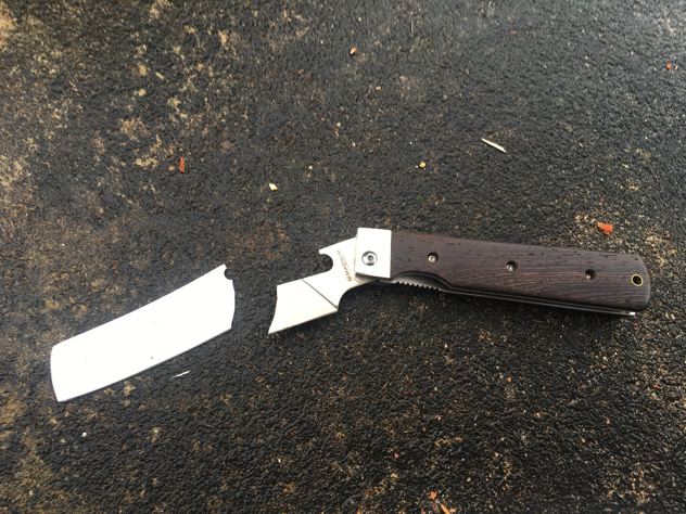 何度も折れたマグナムを見返します。(この時点では、バトニングの知識が全くありませんでした。基本的にフォールディングナイフじゃダメなんですね。し、知らなかった。笑)