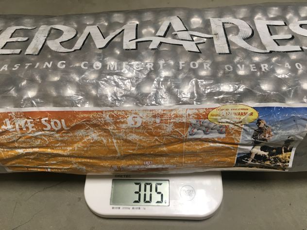 サーマレストのパタパタは305gで断熱性能も最強なのですがやはり嵩張ります。寝相悪いとズレちゃいます。