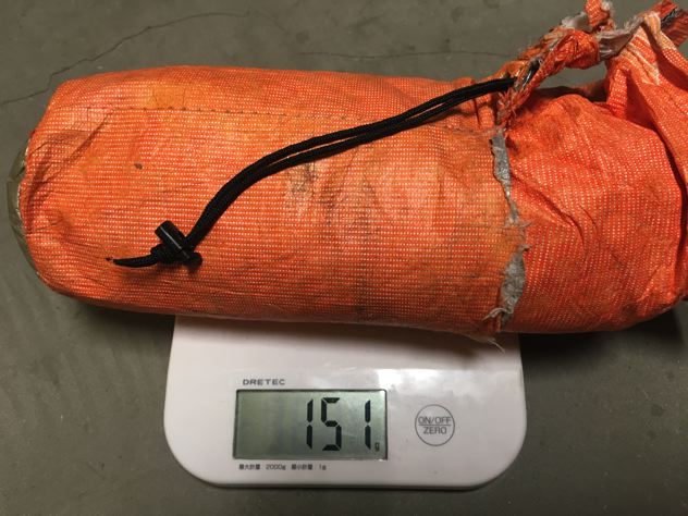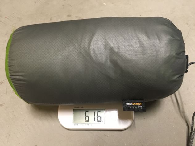 夏用イスカのUL化繊シュラフ616g。これも3シーズン結構使いますが意外と重た。