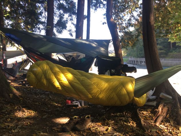 たぁさん、もしや化繊シュラフでミノムシ?