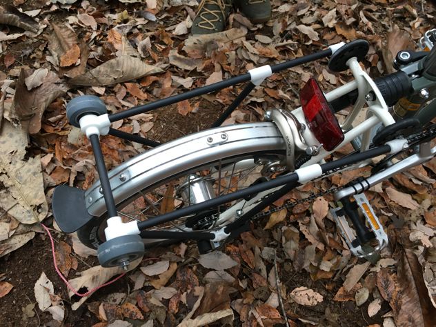 そして自作キャリア。CADで図面描いて3Dプリンターで削ったらしい。むむぅ。やるね。