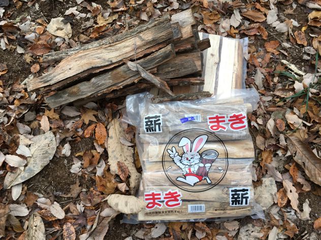 さかもっちゃんは車だったので長く燃える広葉樹の薪を買ってきてもらいました。助かった〜