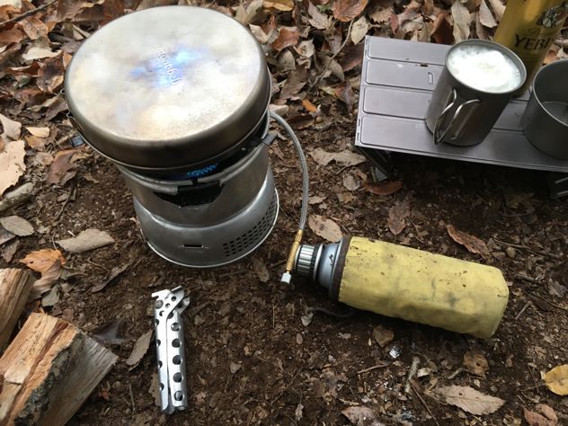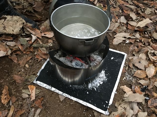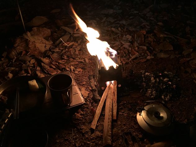 僕ちゃんはエンバーリットULチタンにやかんでお湯を沸かします。