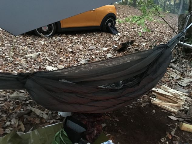 ちょっと寒くなってきたのでサーマレストのハンモックウオーマーをセット。