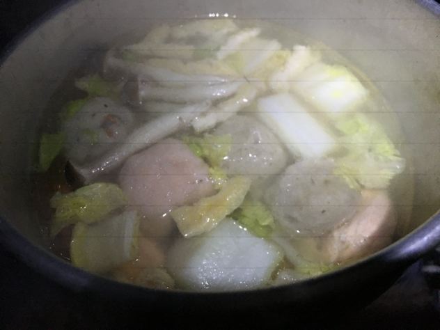 この日のメインは海鮮塩ちゃんこ鍋。これからの季節はやっぱ鍋は簡単で美味しく暖まれます。