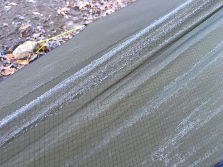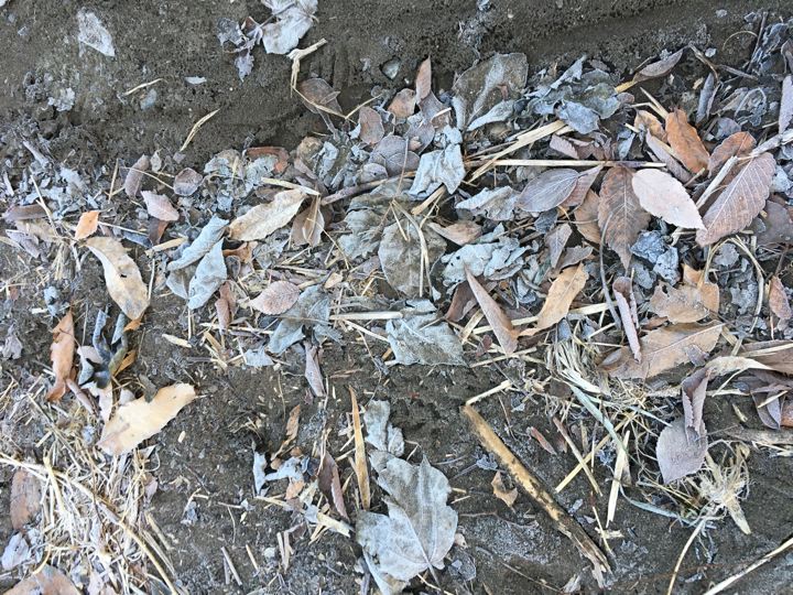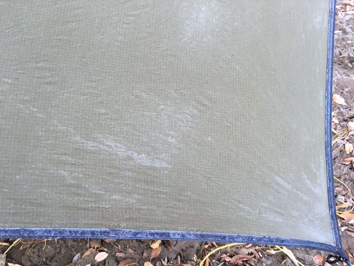 しかし、落ち葉もタープも凍ってます。