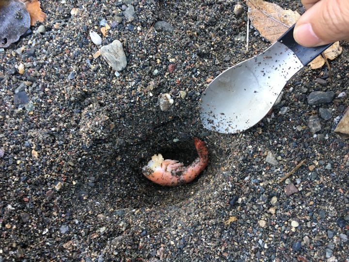 仕方なく、モンベルミニスコップで埋めます。