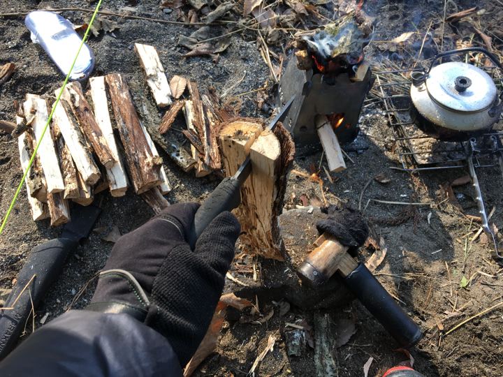 モーラナイフでバトニング!
