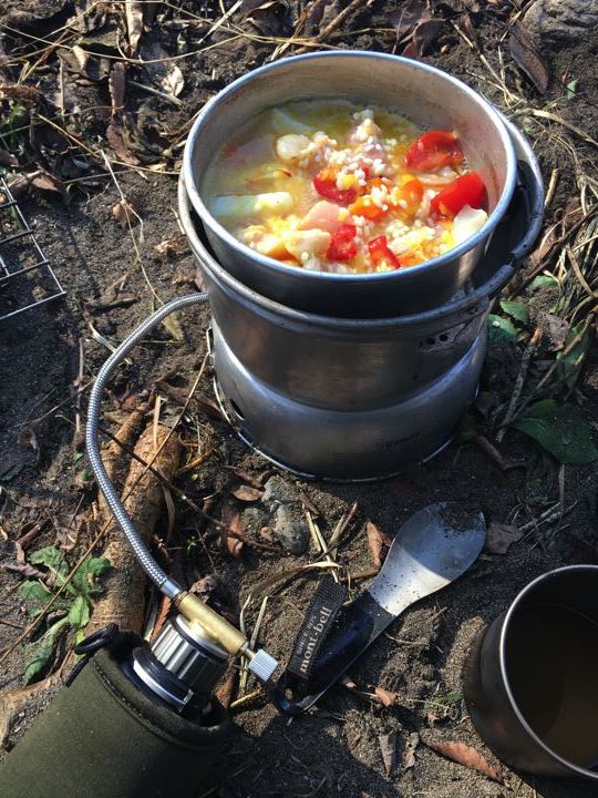 朝ごはんはストームクッカーでパエリア!