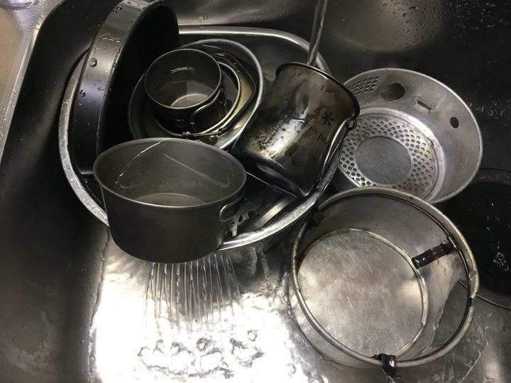 帰ってから、チタンやアルミの洗い物だよ人生は。