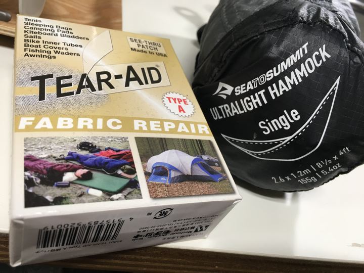 前回のULハンモックの穴補修とかして、おしまい。