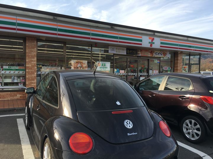 くろび〜のターボエンジン最高!途中のコンビニで食材購入。(くろび〜はコンピューターROMチューンにより150馬力が210馬力になっているのだ!まさに羊の皮を被った狼!)