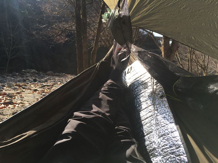 今回の断熱は、毎度おなじみハンモックウォーマーを・・・