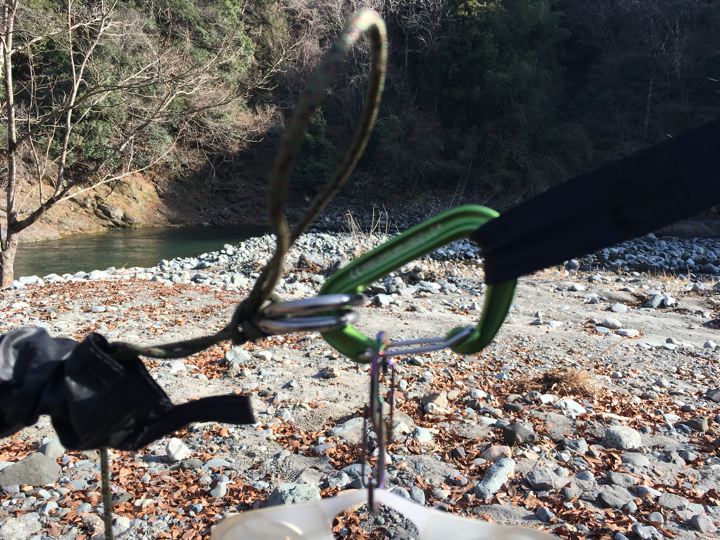 今回は純正ストラップにカラビナとWリング噛ませて高さ調整。(別にトム結びだけでもいい気がするけど。笑)