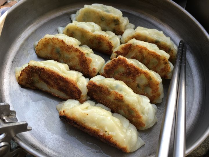 宇都宮野菜餃子をストームクッカーのアルミノンスティック加工フライパンで焼きます!