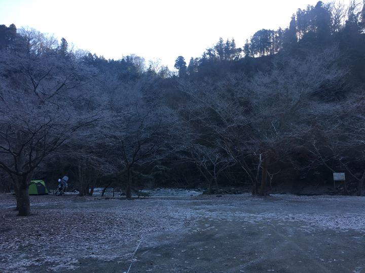 チェックインは8:30からなので地面はまだ霜で白いです。