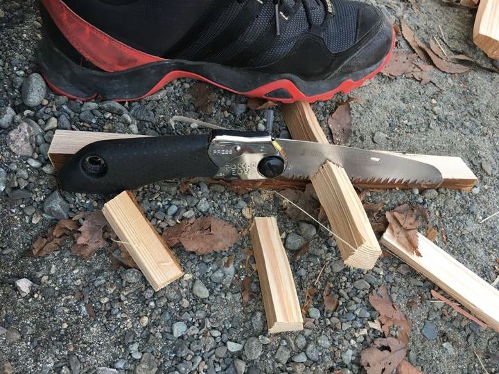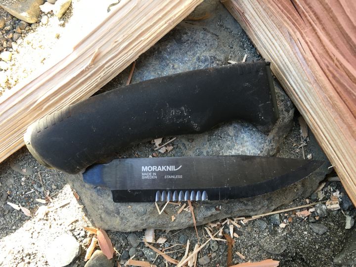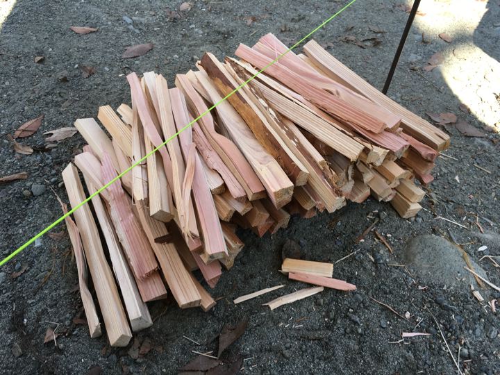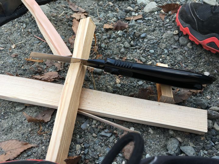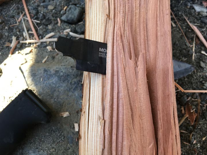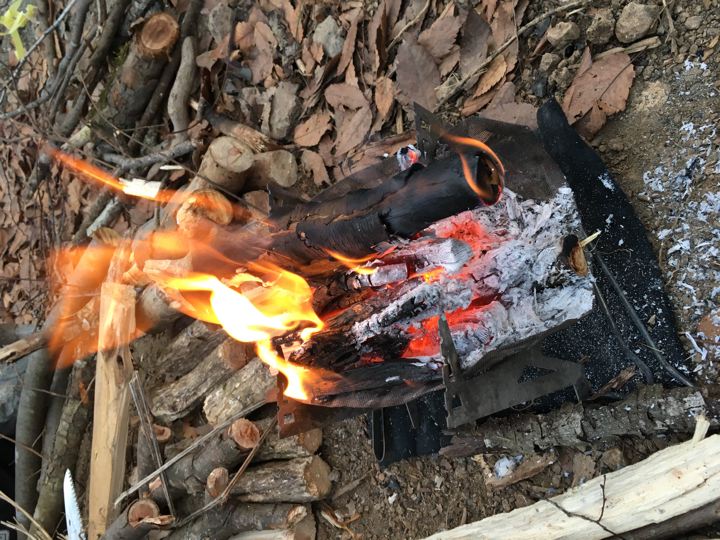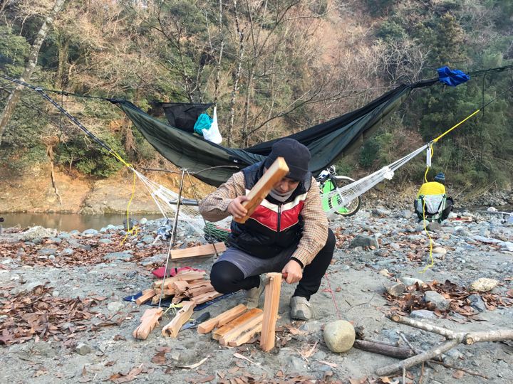 モーラ折っちゃったから、たぁさんのナタを借りてバトニングの続き。やっぱりナタ買いに行くかなぁ。