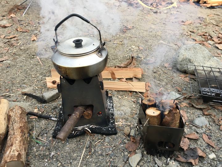 エンバーリットでお湯を沸かして、nano吉でスウェーデントーチの2バーナー。