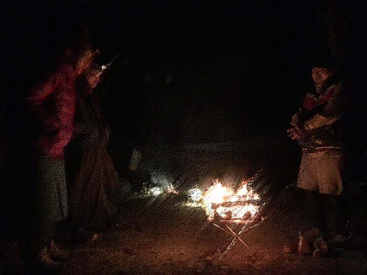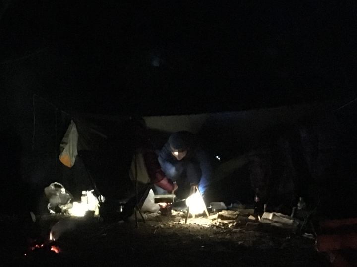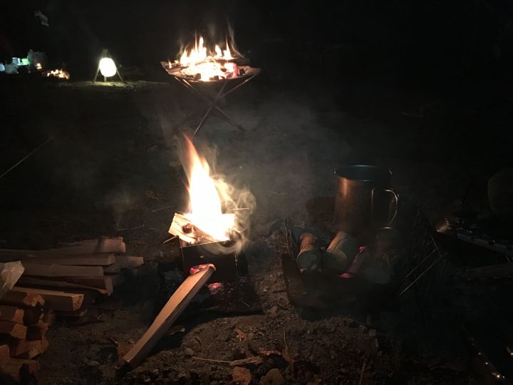 火に集まる仲間たち。真冬はやっぱりこのサイズの焚火台は必要ですね。