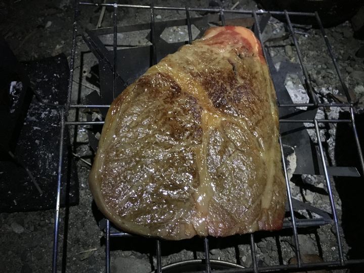 〆はバーゴの炭火で日高牛のステーキ!和牛はやっぱり、う、うみゃ〜!