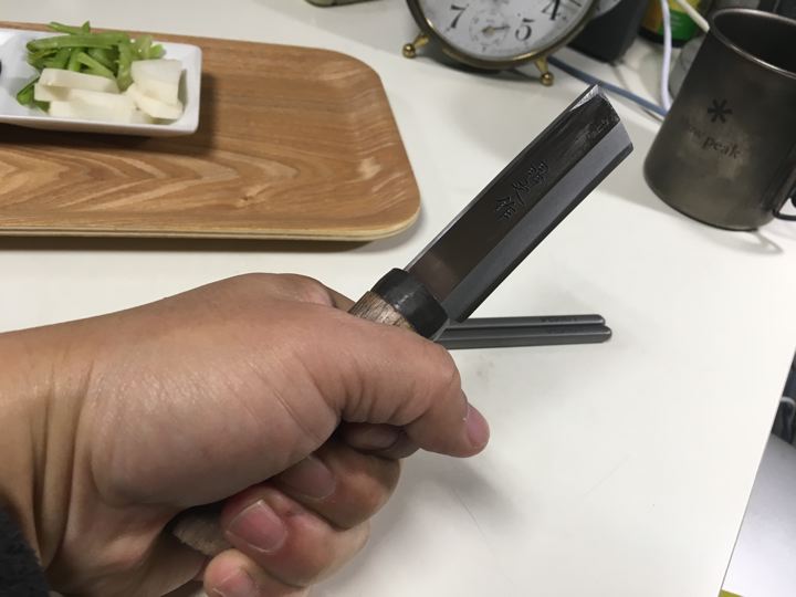 刃の厚みはマスコット鉈に負けた。刃渡りも、ちょっとちびっこ過ぎかなぁ?