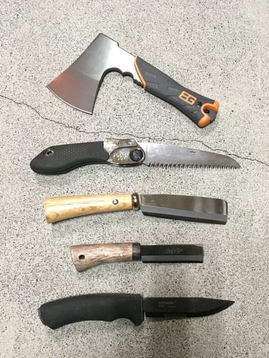 一気に刃物が増えました。斧、鋸、鉈×2、折れたモーラナイフ。