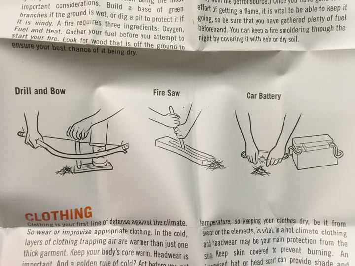 ベア・グリルスさんのサバイバルマニュアル付き。笑