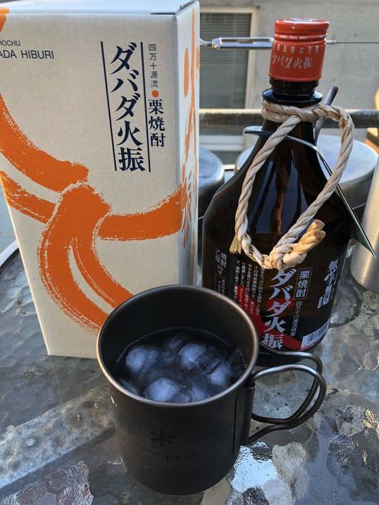 栗焼酎ダバダ火振をロックで飲る〜。うみゃ〜!