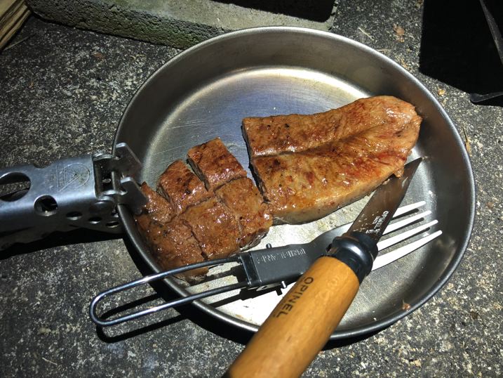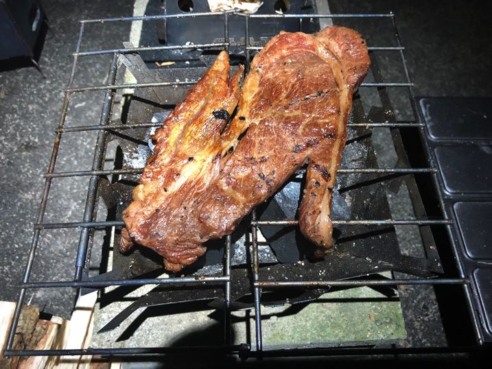 ステーキを炭火で焼きます!何度食べてもシンプルだが、うみゃ〜!