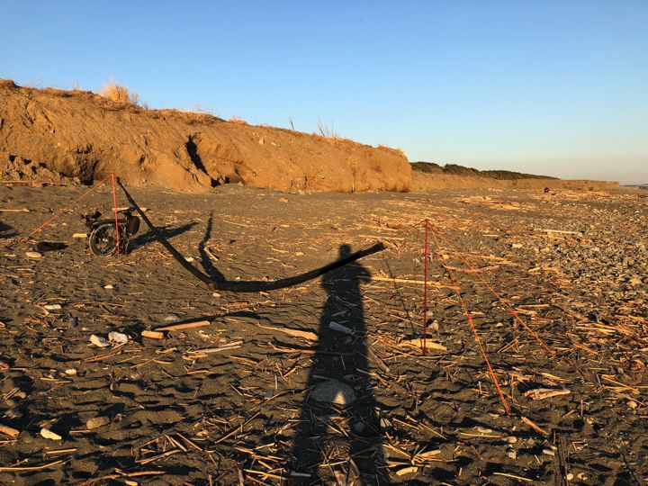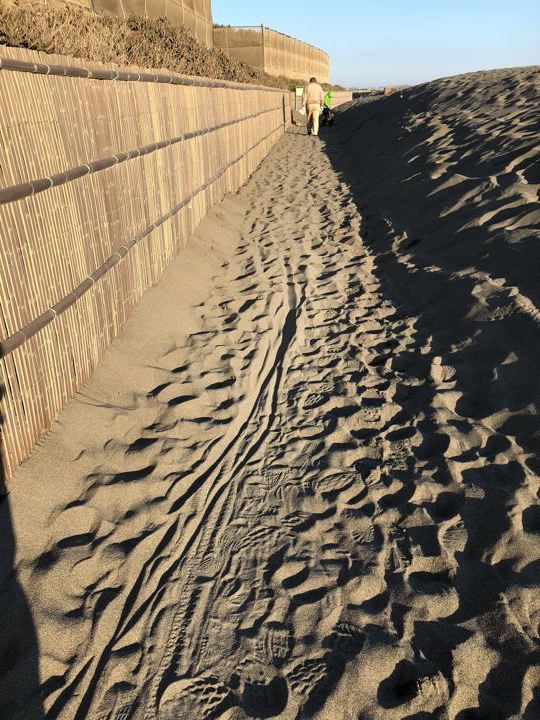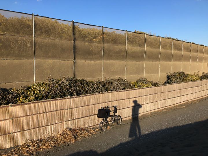 ところどころ風で砂がサイクリングロードに入っていて走れません。ぬ〜