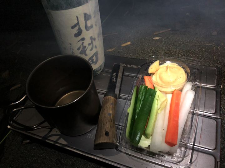 野菜スティックで日本酒を飲る。なんか合わないけど、うみゃ〜!