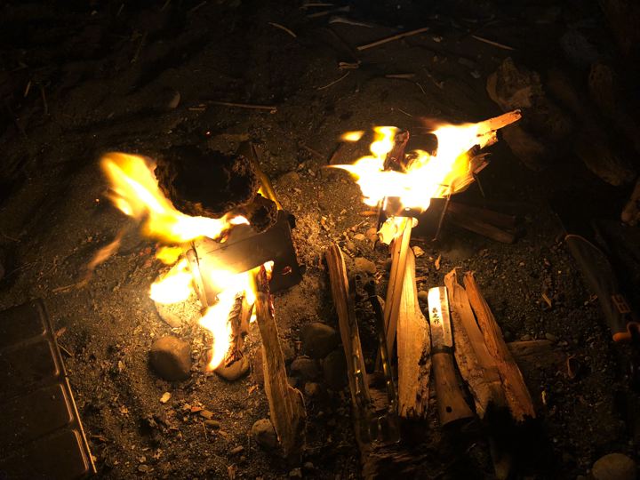 全て自然燃料に急遽切り替え!焚火にファイヤー!