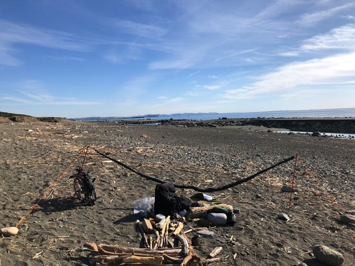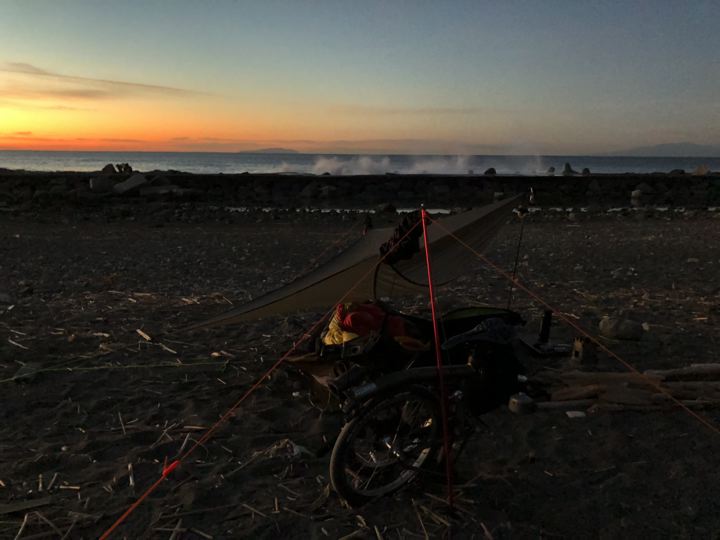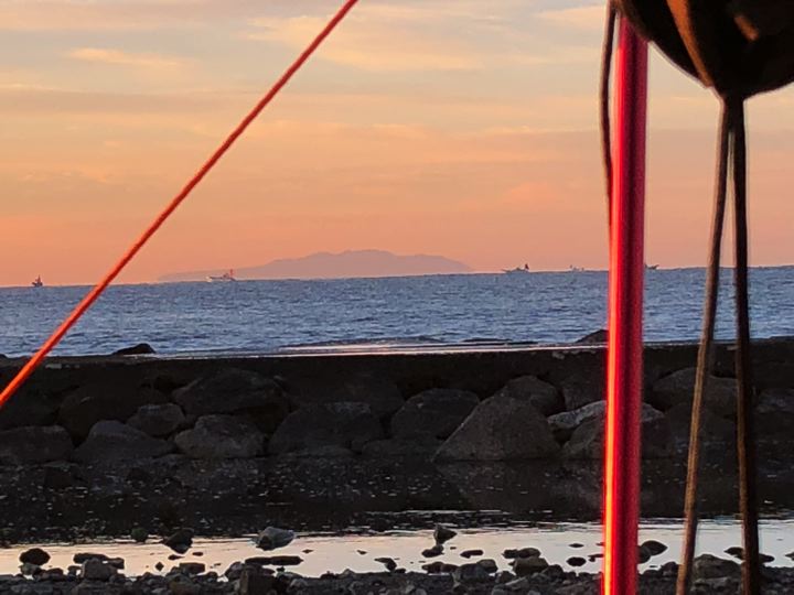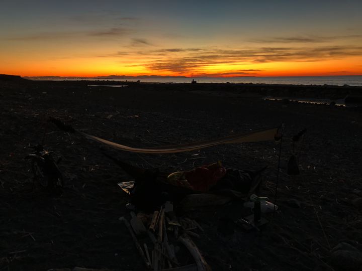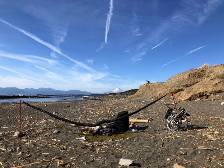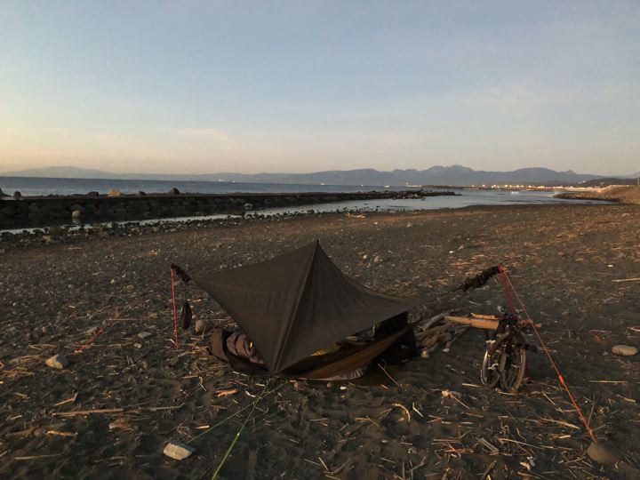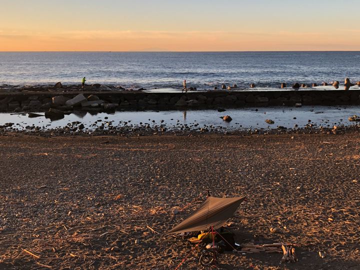 ここが湘南唯一の柳島キャンプ場。予約は常にいっぱいらしいです。しかも焚火禁止。ぬ〜