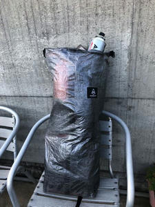 キューベンファイバー製の30Lでわずか125gのULザックで屋上に登ります。