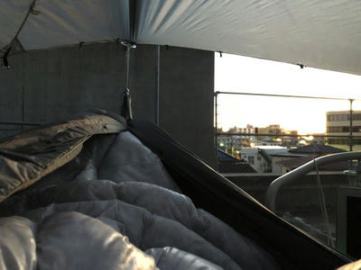 今年の1月初旬のお話。やっぱり寒いのでお出かけするのも面倒なので屋上引きこもりハンモックキャンプにしました。