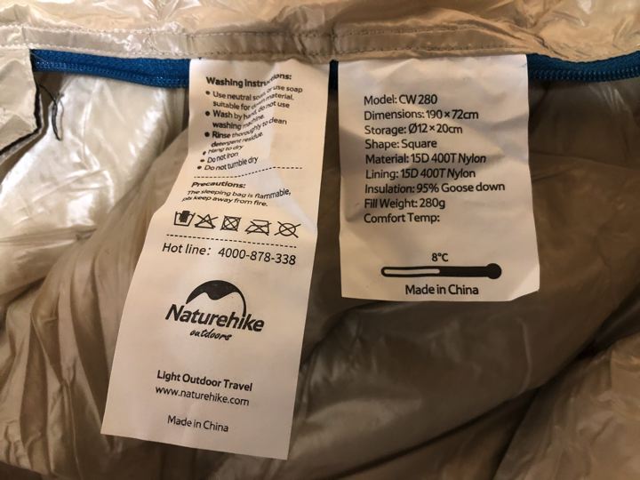 中華シュラフのスペックもなかなか頑張ってると思う。