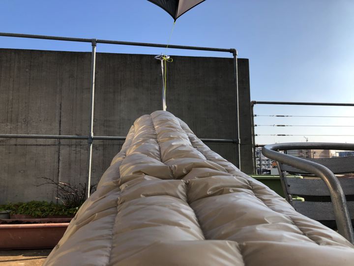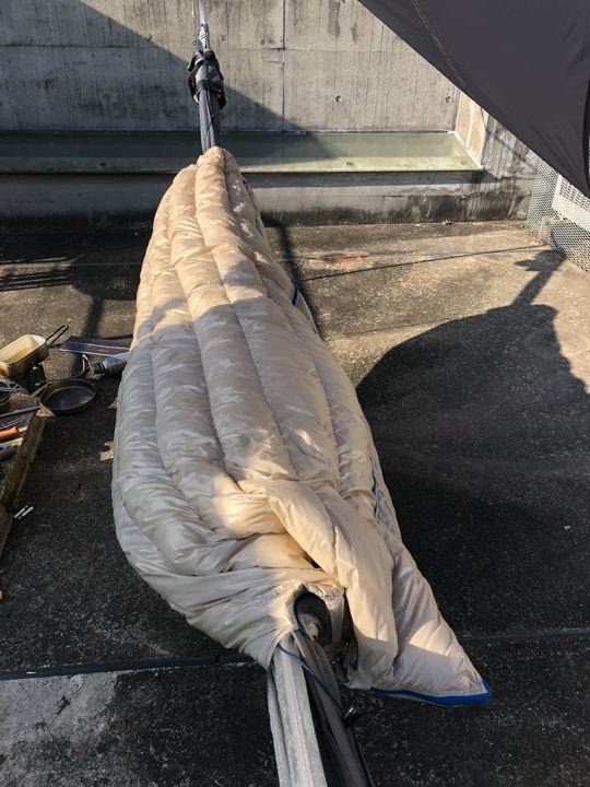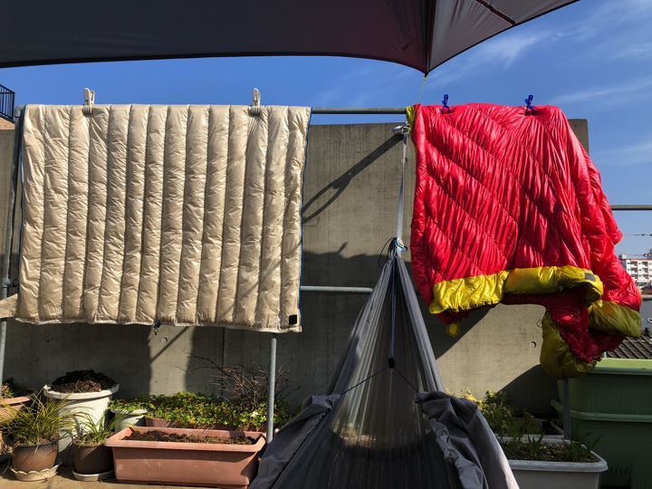 ぽかぽかの中シュラフ干しながらお昼ね。