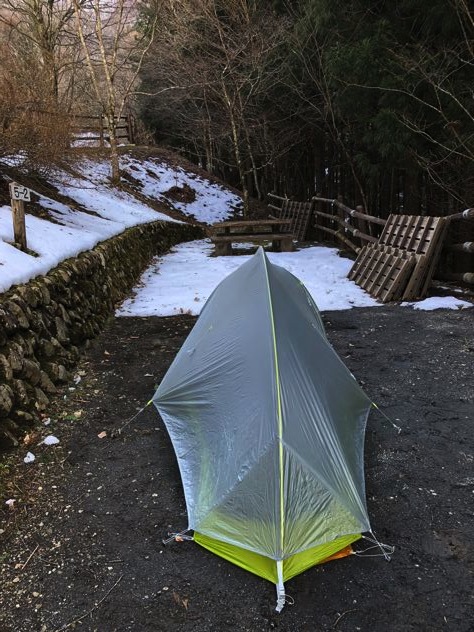 今年の2月中旬頃のお話。久々にミスターと冬キャンする事になりました。事の経緯はミスターが大学の友達とキャンプをするにあたり事前に下見したいとの事。残念ながらハンモックは張れないキャンプ場らしいので、ULソロテントとニンジャタープで挑む事になったのですが・・・。