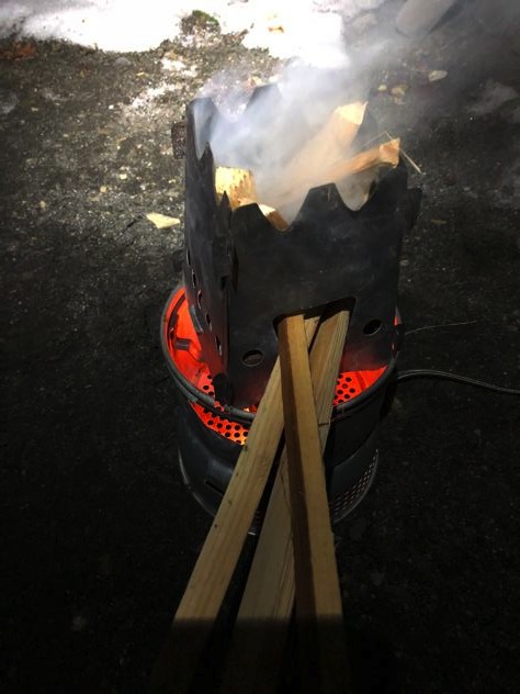 エンバーリットの煙突効果で即ファイヤー!火はやっぱ暖かい。