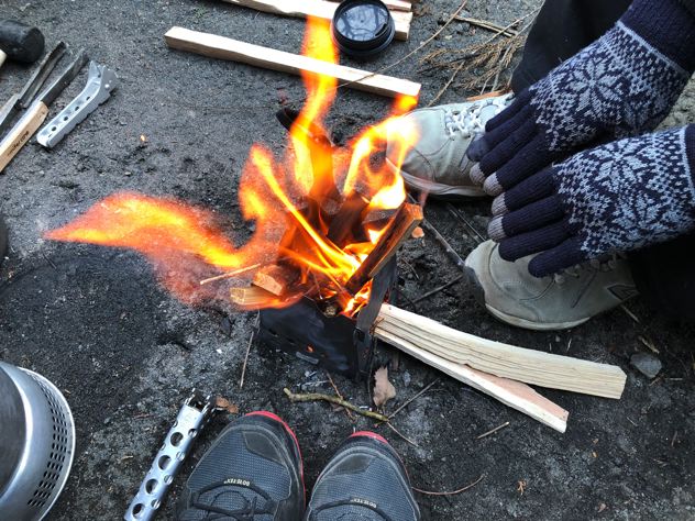 兎に角、手先足先が冷たくなります。焚き火で温めます。