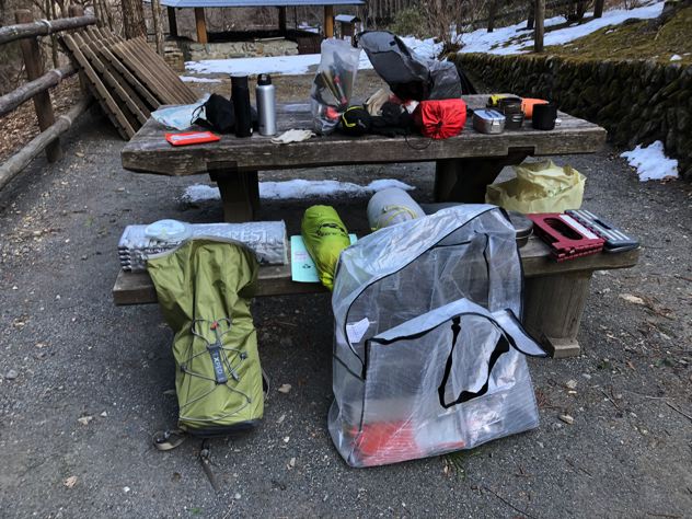 駐車場まで10分歩いて、くろび〜に乗りまたサイトに戻って荷物を積みます。これがちょっと大変。