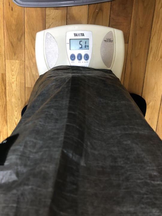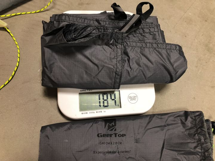 僕ちゃんの持ってる最小1400×2100の最軽量タープ単体で184g。