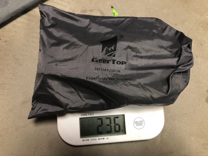 4本のガイラインと自在と袋の全部込み込みで236g。