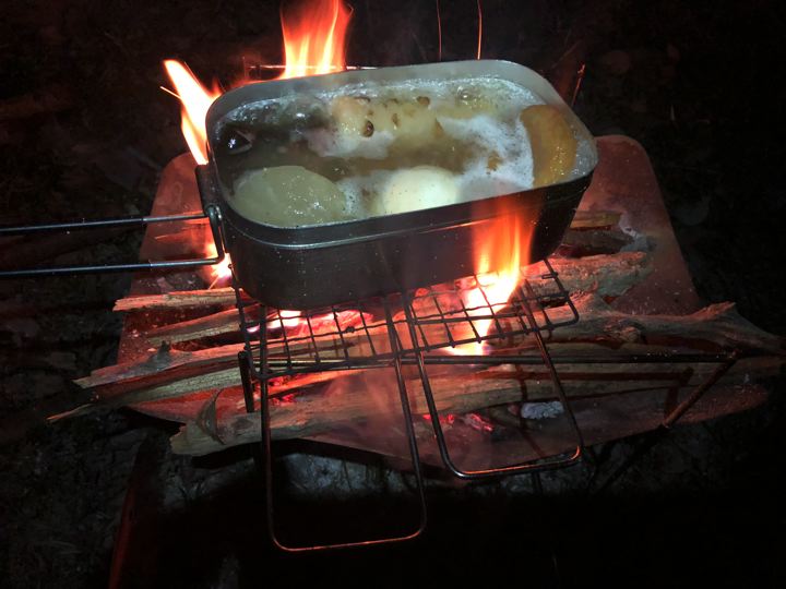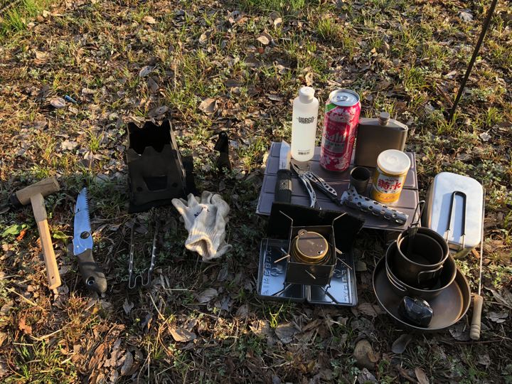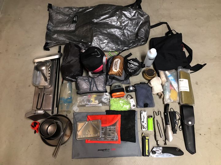 装備はこんな感じ。焚火台3つとかクッカーとかまだまだ削れますね。