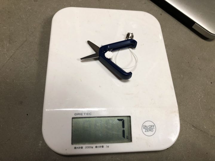 この前2つ間違えてポチった折りたたみハサミは7g。