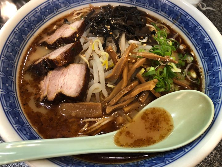 目的地の最寄り駅で降りてランチは熊本ラーメン。ここのはなかなか本場のに近いので、うみゃ〜!