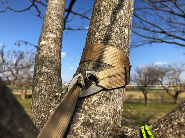 最軽量ツリーストラップをダッチクリップで固定して・・・