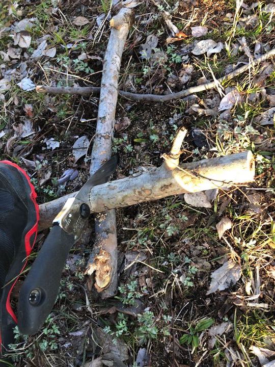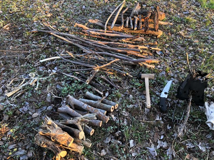 落ち枝を拾いに歩き回ります。前日は雨だったので湿気ってるのが気になります。